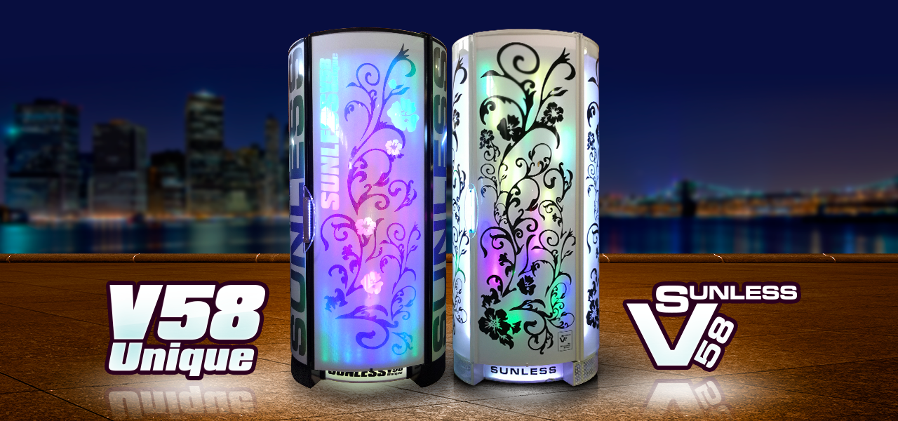 The new Sunless V58 Unique was born by improving our well-known Sunless V58 vertical tanning bed in order to meet higher customer demands. The attractive appearance of the device is in harmony with the interior of the most exclusive tanning studios.